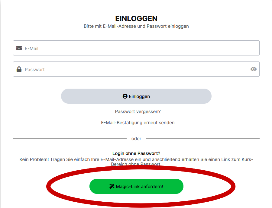 Klicke dazu einfach auf den grünen Button "Magic-Link anfordern". Innerhalb weniger Sekunden solltest du eine E-Mail von ablefy mit deinem individuellen Link zum Kundenbereich erhalten.