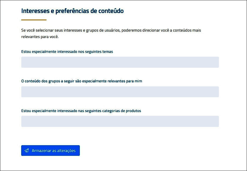 Com a vasta variedade de temas da nova realidade energética, pode ser difícil localizar conteúdos desejados. O perfil do usuário permite definir temas preferenciais e o tipo mais relevante de informação – por exemplo, para expositoras, visitantes ou jornalistas. Assim, o conteúdo e as notícias mais relevantes aparecem prioritariamente.